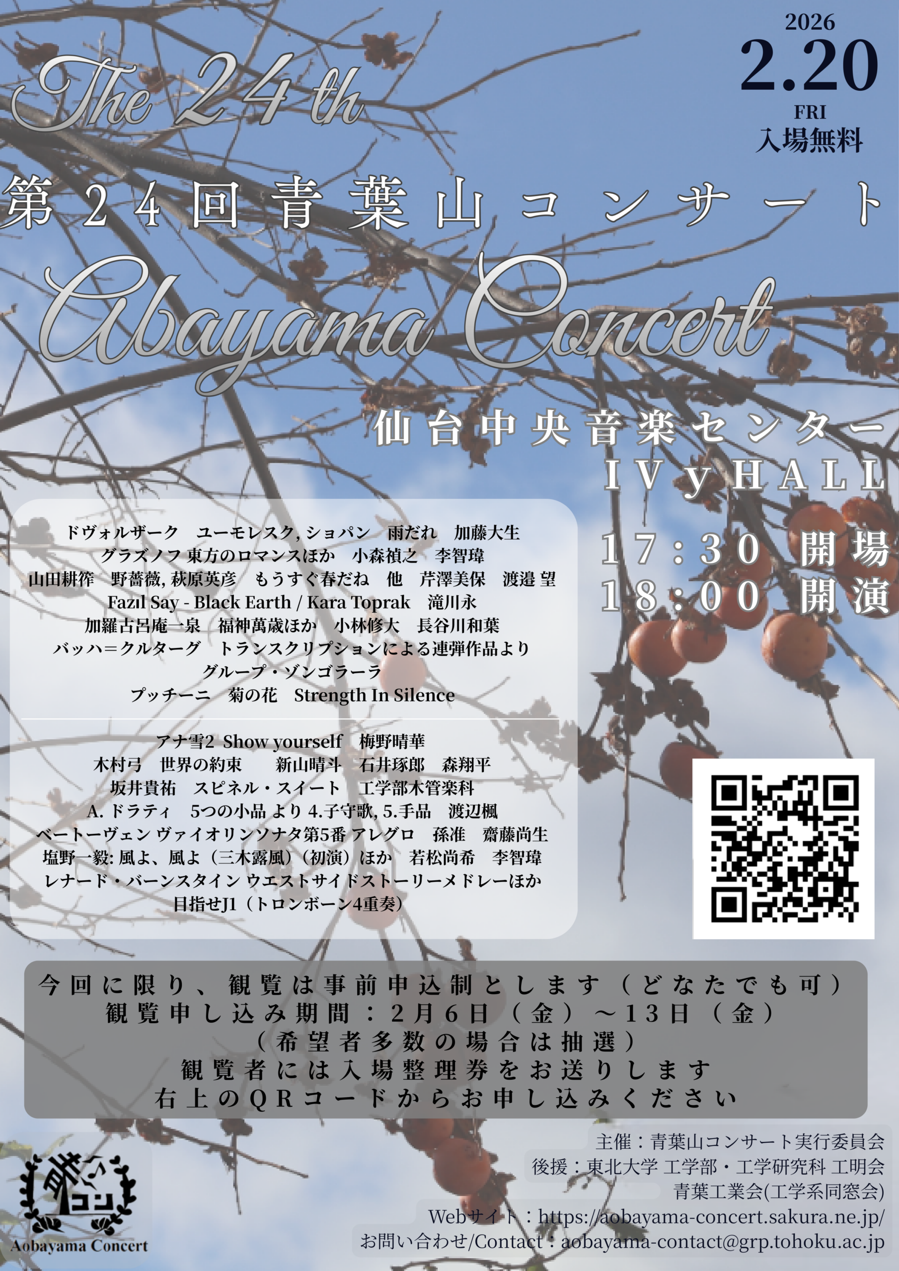 問い合わせ先:青葉山コンサート実行委員会 E-mail:aobayama-contact*grp.tohoku.ac.jp(*を@に置き換えてください)